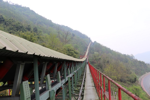 經(jīng)亞東水泥采掘二組陳主任對游走皮帶的相關(guān)事項(xiàng)進(jìn)行詳細(xì)講解并配發(fā)手套、飲水后,同仁們分成兩組由亞泥同事帶隊(duì)出發(fā)。12:10,歷經(jīng)兩個半小時的游覽后,全體同仁勝利到達(dá)終點(diǎn),前往農(nóng)家樂休歇。總投資人民幣3億元,歷時2年興建的長皮帶工程,于2009年3月正式投入營運(yùn)。皮帶全長12.6km,由皮帶廊道、轉(zhuǎn)站、倉棚等組成,主要采用高架橋方式,基礎(chǔ)型式為獨(dú)立基礎(chǔ),最高距地落差近百米。