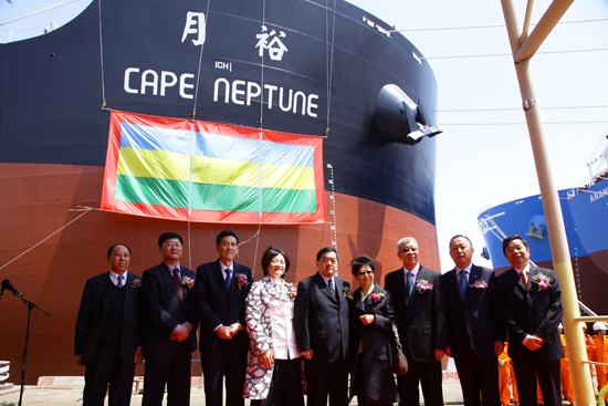 裕民航運新加坡子公司委托中國最大船廠──上海外高橋造船公司,建造206,000載重噸海岬型散裝貨輪「裕月輪」(M.V. “Cape Neptune”),于4月22日假上海市外高橋船廠完成命名接船典禮,典禮由遠東集團徐旭東董事長親自主持,并邀請渣打銀行大中華區(qū)主席曾璟璇女士,擔(dān)任裕月輪之命名夫人。